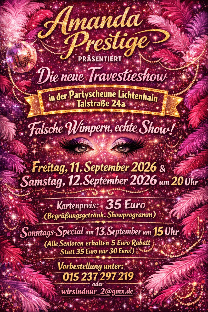 Der Link für die Travestieshow von Amanda Prestige im November 2024 findet ihr unter: